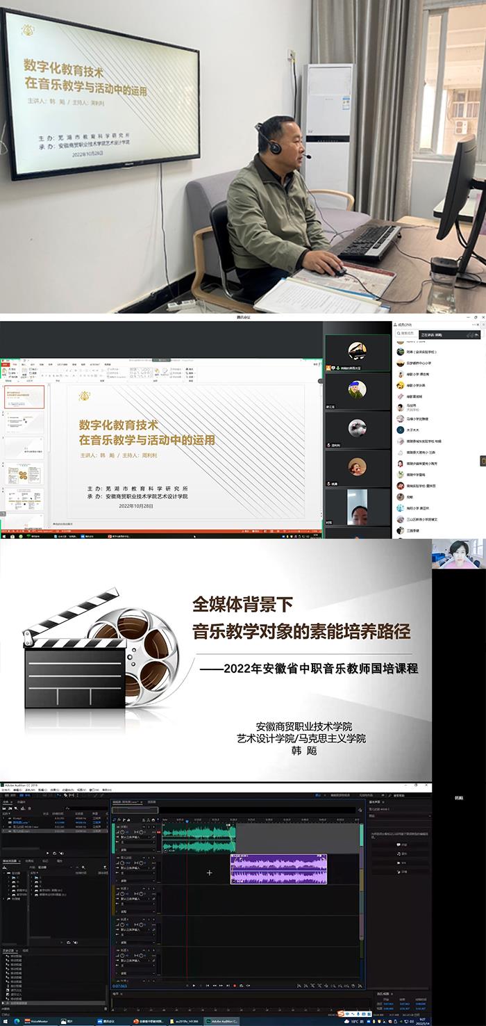 为服务地方基础教育发展,用数字化教育技术促进中小学音乐课教学方法创新,拓展音乐课教学资源建设渠道,10月28日,应芜湖市教育科学研究所邀请,我校艺术设计学院党总支书记韩飚老师为芜湖市中小学音乐教师作《数字化教育技术在音乐教学与活动中的运用》专题培训,活动由芜湖市教育科学研究所音乐教研员周利利主持,市360余名中小学音乐教师通过线上、线下方式参加了培训。