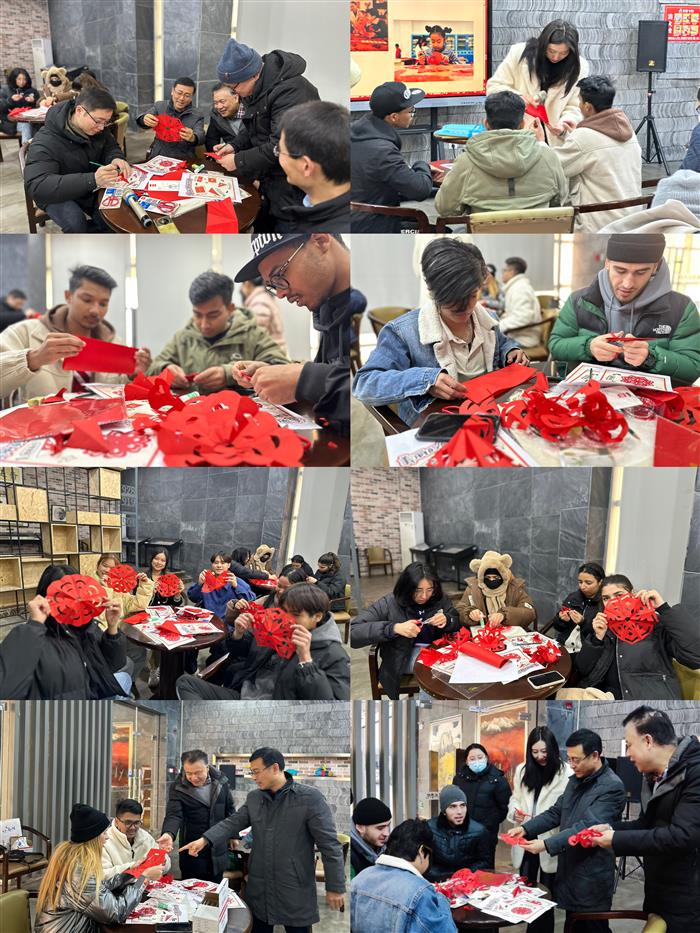 日期:2024-01-30 来源:为丰富留学生假期生活,培养学生文化艺术鉴赏能力,日前,国际商务与旅游学院在图书馆一楼多功能厅举办剪纸艺术鉴赏活动,邀请芜湖市文化馆牛丽萍老师讲解剪纸文化知识,并现场教授大家动手创作剪纸作品,假期在校的留学生、学校外事办和学院相关老师参加活动。