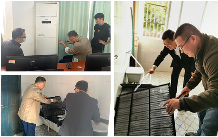 寒冬将至,机房空调又将投入新一轮的使用高峰,为保证空调使用效果,给师生创造一个温暖、健康的上课环境,支部结合岗位工作开展清洁机房空调的志愿活动。支部党员分为四个小组,对砺能楼4号楼的实训室空调进行全面清洗。