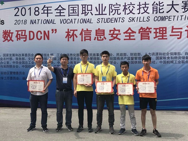 5月28日,2018年全国职业院校技能大赛“信息安全管理与评估”赛项(高职组)在福建平潭开赛。由我校电子信息工程系王新宇、胡浩、余磊三位同学组成的安徽省一队获团体一等奖,何军、朱建帮老师获“优秀指导教师”荣誉称号。