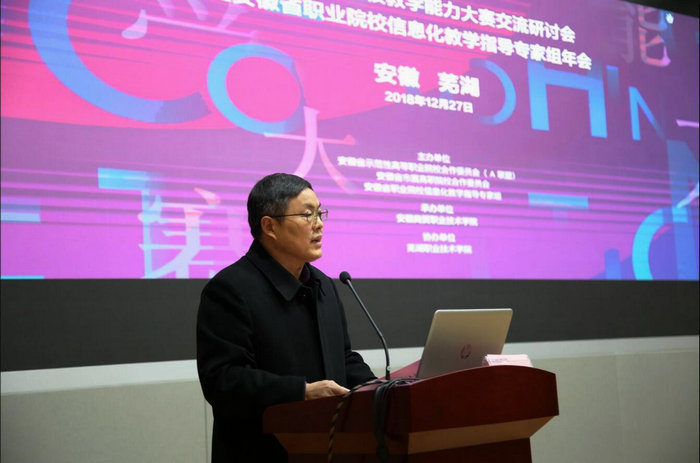 12月27日,我校承办、芜湖职业技术学院协办的2018年安徽省职业院校教学能力大赛交流研讨会暨安徽省职业院校信息化教学指导专家组年会在新百金陵酒店召开。本次会议由安徽省示范性高等职业院校合作委员会(A 联盟)、安徽省市属高职院校合作委员会、安徽省职业院校信息化教学指导专家组主办。