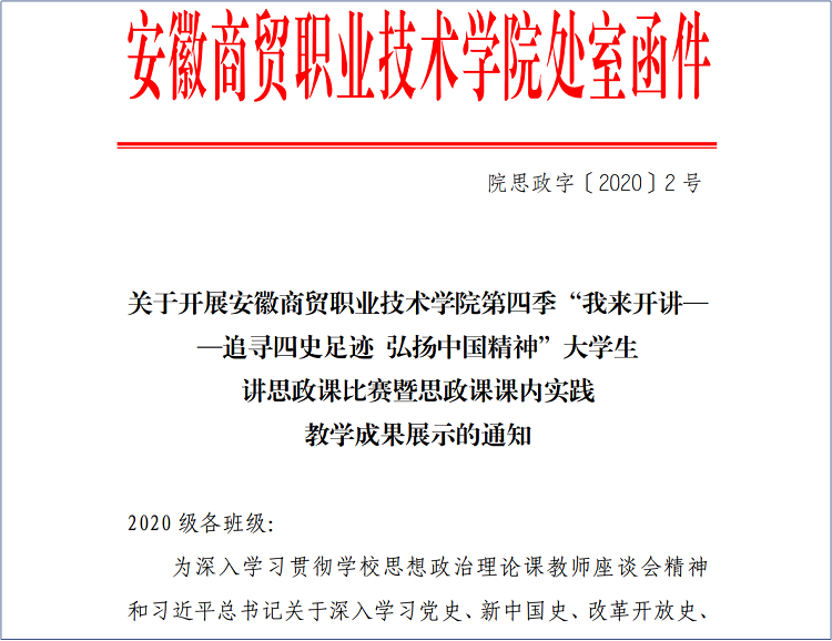 2021年1月6日晚,“我来开讲——追寻四史足迹 弘扬中国精神”大学生讲思政课比赛(决赛)暨思政课实践教学成果展示在学术报告厅正式上演。学校党委书记章顺来出席活动并为比赛优秀指导教师颁奖,安徽师范大学教授、博士生导师赵平,芜湖职业技术学院马克思主义学院院长杨婉玲,安徽机电职业技术学院马克思主义学院院长徐生,我校相关职能部门负责人,马克思主义学院全体专兼职教师以及决赛班级的学生代表参加活动。