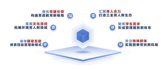 融入学生社区。学校入选教育部一站式学生社区综合管理模式试点单位,出台实施方案,建立联席制度。强化党建引领,构建思政教育新格局,成立学生社区党团组织,建立学生党员网格化管理体系,突出先锋示范引领作用,五育并举,推动思政和素养教育品牌活动进社区。汇聚育人合力,打造三全育人新生态,党政领导下沉一线,学管队伍躬耕一线,思政课教师深入一线,探索“三业”导师制度,行业专家亲临一线。重视文化浸润,拓展环境育人新场域,营造党建文化氛围,建设社区文化主阵地,打造幸福社区文化氛围,多渠道加强社区文化宣传。聚焦学生需求,形成管理服务新体系,打造“一站式”学生服务大厅,建设多元化学生活动空间,建设数字化“虚拟学生社区”平台。倡导朋辈互助,探索四自管理新模式,加强学生社区组织建设,开展学生社区实践活动。关注特殊群体,实施困难帮扶新机制,聚焦“五特”学生,建立各类特殊群体台账,实施“一对一”帮扶机制,强化受助学生诚信、感恩教育。