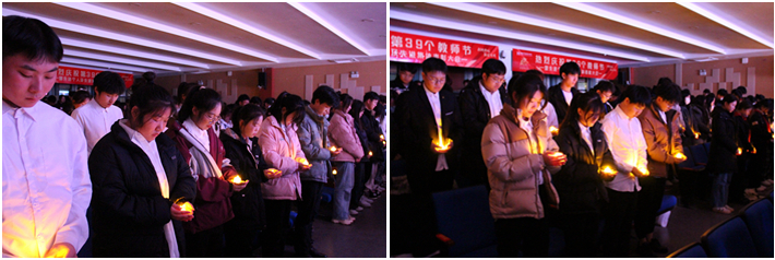 12月13日是第10个南京大屠杀死难者国家公祭日,也是南京大屠杀惨案发生86周年。为加强团学青年爱国主义教育,引导青年学子树立铭记历史,珍爱和平,自强不息的坚定信念,12月13日晚,校团委老师以及各级学生组织、学生代表三百余人在大学生活动中心举行国家公祭日悼念活动,通过活动重温民族痛史,缅怀为国捐躯的先烈和遇难同胞,表达护卫和平的愿景。