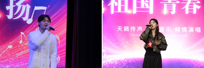 接着,歌手大赛拉开帷幕。14组选手依次闪亮登场。两两对决、大众评审、终极PK三个环节的激烈角逐,展示了我校学子的音乐才能和青春风采,为观众带来一场沉浸式音乐之旅。台下的观众们挥舞起荧光棒、拍手等道具热烈互动,将情绪价值拉满。经过多年的培育,歌手大赛已成为深受广大师生喜爱的品牌活动,此次大赛共有154名选手报名参加现场海选,给爱好音乐的同学提供了更加广阔的舞台。活动最后,全体师生起立齐唱《红旗飘飘》,伴随着激昂的爱国赞歌响起,旗手们挥舞着红旗,引发全场师生共鸣,将气氛掀至高潮。