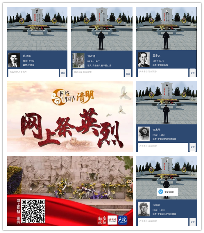 学校各级团组织积极行动,充分利用安徽省退役军人事务厅官网等重点网站搭建的“网上祭英烈”互动平台,祭奠英烈,网上献花,寄语留言,表达心声,进一步激发了同学们的爱党爱国情感,使广大青年深刻了解了革命先烈的英勇事迹和无私奉献的精神。据统计,学校共计140多个班级部落在第二课堂开展了形式多样的缅怀活动。