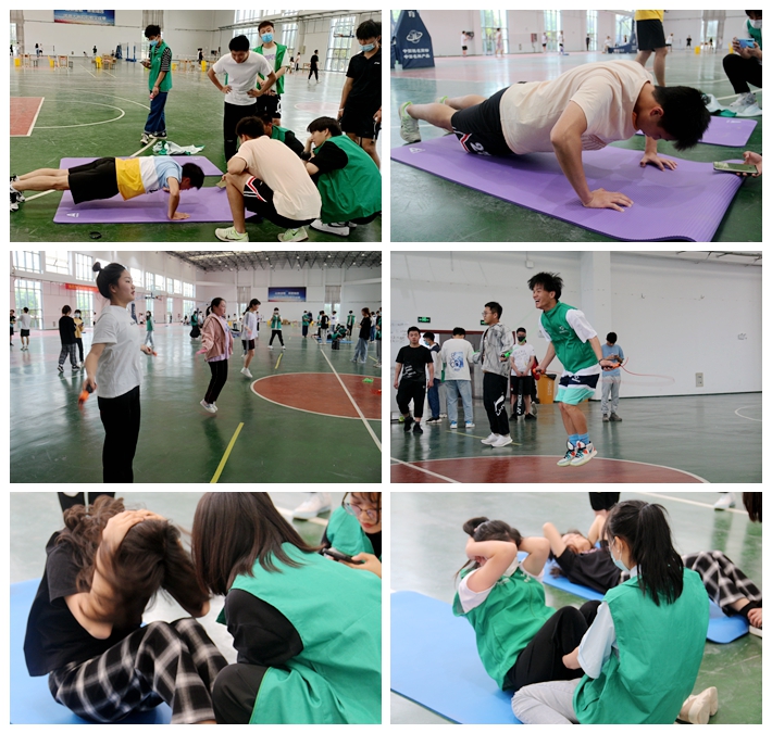 活动在住校老师的支持和关心下有序开展。老师们也积极参与锻炼,用实际行动作出表率。在老师们的带动下,活动得到广大同学的广泛关注和踊跃参与,活动现场气氛如火如荼,精彩不断。跳绳、平板支撑、仰卧起坐,每个同学都能在自己感兴趣的项目上尽情展示,不亦乐乎。更高、更快、更强、更团结的体育精神感染了现场所有同学,运动达人们骄人的成绩更是赢得了现场同学的阵阵掌声与喝彩。经过激烈角逐,商务英语212班马恩赐、物流管理203班柏世超等9名同学获得运动达人称号,展现了商贸学子勇于挑战、拼搏进取的精神面貌。