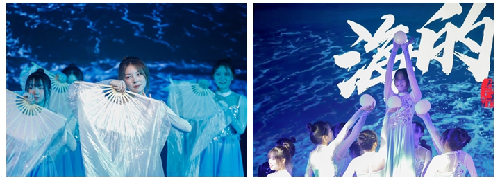 比赛现场,巧妙的舞蹈编排,精致的服装搭配,精益求精的舞姿以及炫丽的舞台效果,为大家呈现了一场精彩纷呈的文化大餐。各二级学院选送的13支舞蹈节目整装待发,作品《星火》大气磅礴,恢弘壮丽,展示了一代代革命人不忘初心使命,点燃星星之火,终成燎原之势的波澜壮阔历程;《桃李》寓意“春雨绵绵,浸润桃李满园;师恩难忘,培育莘莘学子”,凸显了一把算盘、一支笔的商贸文化,展示了我校"百年安商 立德树人"的育人理念;作品《海的追寻》运用灯光、绸缎、背景、音效等元素再现大海时而波光粼粼,时而汹涌澎湃,时而温柔细腻,时而震撼人心的广袤胸怀;《墨韵》传唱风雅颂歌,腾起凤舞龙翔,展现国风浩荡,源远流长;《飞天》用酷炫的舞蹈、独特的音乐展示了古老东方文明的神秘与辉煌;《金陵十三钗》将柔美的舞蹈与残酷的战争形成强烈反差,告诉我们不忘历史,珍爱和平;《霍元甲》将舞蹈和武术融合为一体,一招一式,张弛有度,收放自如,让我们感受到中国功夫的博大精深;《疫情不抑情》讲述了疫情防控这场全民战役中,无数平凡英雄舍小家为大家,义无反顾奋战一线的感人故事。此外,《Waiting up》《As if it's your last》《如梦》《万疆》《go ahead》等一个个主旋律、正能量的作品,充满青春活力,点赞在青春赛道上奋力奔跑的青年,赢得现场一次次热烈的掌声。