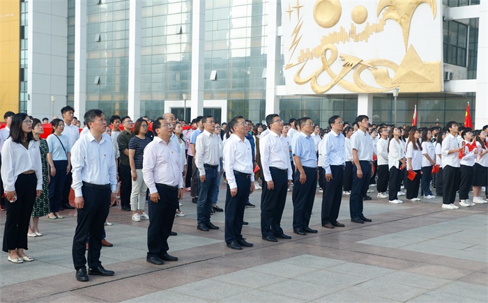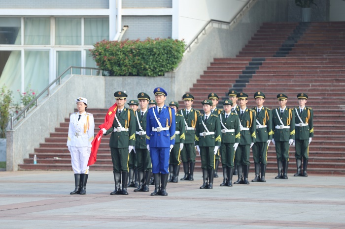 为迎接党的二十大胜利召开,庆祝中华人民共和国成立73周年,致敬伟大征程,涵养家国情怀,10月1日,学校在笃学楼广场举行“青春向祖国告白”升旗仪式,以青春之名祝福伟大的祖国73周年华诞。学校党委书记曾黎明,党委副书记、纪委书记朱光应,党委委员、副院长郑承志,相关部门和教师党支部老师、校级团学组织代表、第26期青马工程学员班代表以及各二级学院班级代表近千名学子参加仪式。