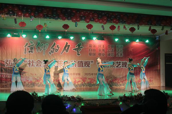 1月11日晚,学院“信仰的力量”弘扬社会主义核心价值观专题文艺晚会暨第12期青马工程培训班结业典礼在大学生活动中心举行。晚会以社会主义核心价值观24个字为主线,巧妙地将社会主义核心价值观与歌舞音韵无缝对接,引导广大团员青年培育和践行社会主义核心价值观。学院党委副书记、纪委书记朱光应、副院长郑承志,相关部门负责人、各系部党团总支书记以及各学生组织的大学生骨干观看了本次文艺晚会。朱光应为专题文艺晚会暨青马工程培训班结业典礼致辞。