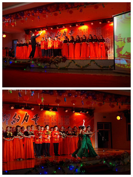 晚会最后在大合唱《爱我中华》《相亲相爱》中落幕,莘莘商贸学子用自己的歌声唱出了厚德弘商、笃学砺能的商贸精神和励精图治、报效祖国的豪情壮志。晚会节目虽然不多,但充满正能量、闪现核心价值观的节目感染了在场的老师和同学,台下不断响起的掌声为整台晚会画上了圆满句号。