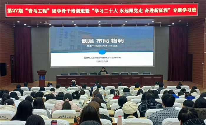 为深入学习宣传贯彻党的二十大精神,更好团结引领广大青年学子紧跟核心奋进新征程、夺取新胜利,根据校党委学习教育安排,校团委于12月2日-4日举办了学校第27期“青马工程”团学骨干培训班暨“学习二十大 永远跟党走 奋进新征程”专题学习班。