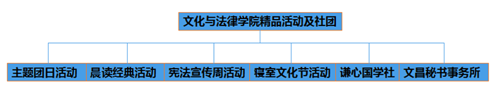 一心:院团总支,发挥核心纽带及统筹指导作用;内环:学生会,发挥学生“自我管理,自我教育,自我服务”主体组织的功能;外环:发挥活跃校园文化骨干力量的积极作用。