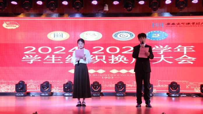 卢菊老师宣读了《校荣我荣展新风 争做爱校安商人》的倡议书,希望团学骨干以身作则发挥榜样带动作用,为培育优良学风、创建文明校园贡献力量。会上,指导老师们为学生干部颁发了工作证和聘书,既是一份荣誉,承载着他们的努力与奉献,也是一份责任,激励着他们勇于担当。现场还表演了舞蹈、合唱等节目,展现了我校学子多才多艺、昂扬向上的风采。