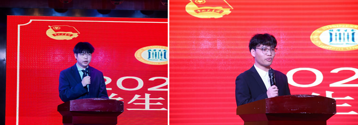 会上,校社团联合会主席李政作为上届学生干部代表发言,分享了自己在筹办活动中的挑战与收获,强调了团队合作的重要性。“一个人可以走得很快,一群人才能走得更远”,希望新一届学生干部团结协作、奋发有为,为服务学校中心大局汇聚青春力量。接着,校学生会主席陈卓代表新一届学生干部发言,表示要统筹好学习与工作的关系,发挥好模范带头作用,在加强思想引领,丰富校园文化,服务同学成长方面发挥积极作用。