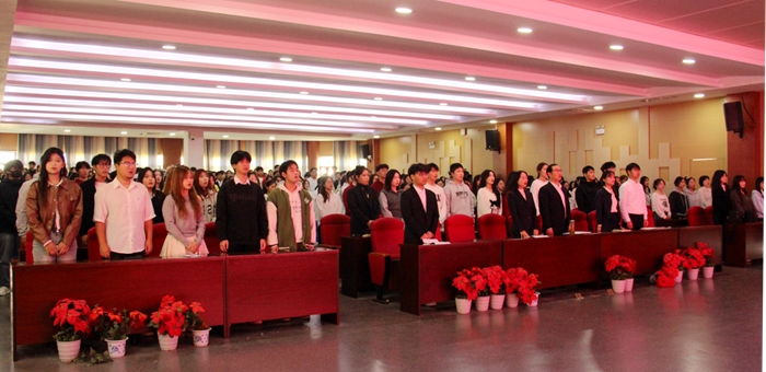 大会在庄严的国歌声中拉开序幕。随后,一段由上届学生干部共同制作的开场视频带领同学们回到一起并肩奋斗,不负韶华的难忘经历,激起了与会者的共鸣与回忆。