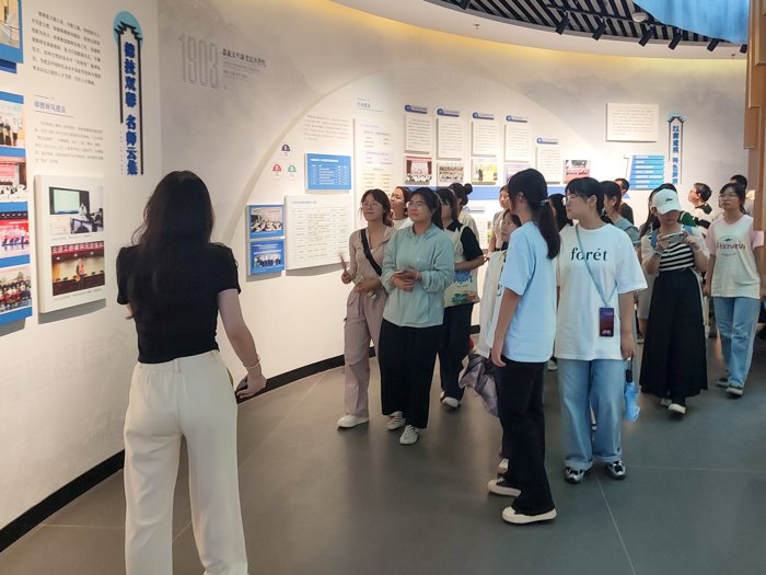 为打造高质量的参观体验,同时为热心学校服务的同学搭建实现个人价值的平台,学校还组建了专业的学生讲解服务团队。同学们凭借丰富的知识、热情的态度和专业的讲解,使每位参观者都能在专业引领下“亲历”学校发展历程,进一步凝聚广大师生知校、爱校、荣校、兴校的不竭动力。