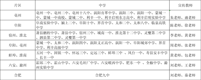 为更好地展示我校教育教学成果,解答家长和考生关于学校2024年招生政策等方面的疑问,6月26日至29日我校教师将深入省内各中学,开展线下招生咨询活动,现将具体安排通知如下,考生可就近参加。
