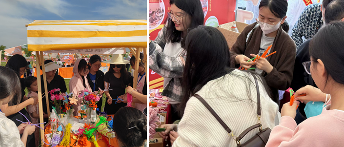 活动现场,同学们制作的手工文创产品自带文化属性,吸引了不少求职者驻足观赏,他们不禁动手体验起来,从中享受手工乐趣,收获“妙手生花”的成就感。团队成员与来自不同领域的创业者进行了深入的交流与探讨,分享了各自的创业心得与经验。同学们纷纷表示“通过此次活动,结识到了很多知音,收获了不少关注,更加坚定了手工创业的信心!”