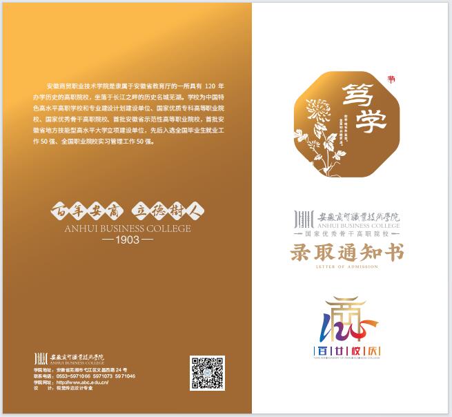 录取通知书将学校的校训“厚德 弘商 笃学 砺能”、120周年校庆标识和梅兰竹菊三种元素有机融合,通过四种色调寓意季节的交替变化,并精选箴言名句,寄语新生。希望莘莘学子能够回顾学校百廿风雨历程,在新历史起点上,传承百年商贸的精神与梦想,以坚毅的决心和勇气,谱写属于自己和商贸的新篇章。