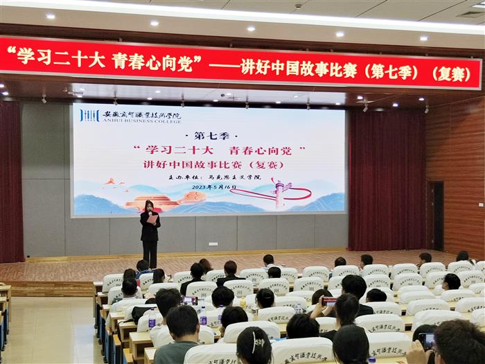 “长风破浪会有时,直挂云帆济沧海”。2023年5月31日晚,备受期待的“学习二十大 青春心向党”讲好中国故事比赛(第七季)决赛在学术报告厅正式拉开帷幕。安徽机电职业技术学院党委委员、宣传统战部部长、马克思主义学院院长徐生,芜湖职业技术学院马克思主义学院党总支书记罗先奎、安徽中医药高等专科学校思政部主任马凌峰、我校相关职能部门负责人及有关领导、学校全体专兼职思政课教师以及决赛班级的学生代表出席了此次活动。